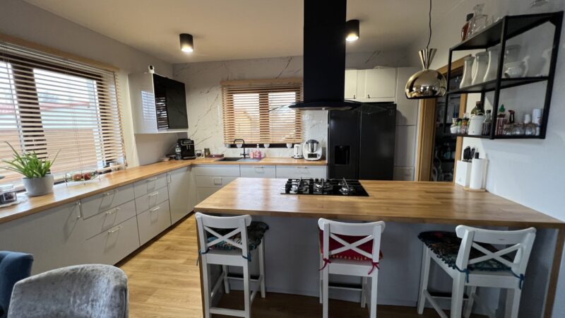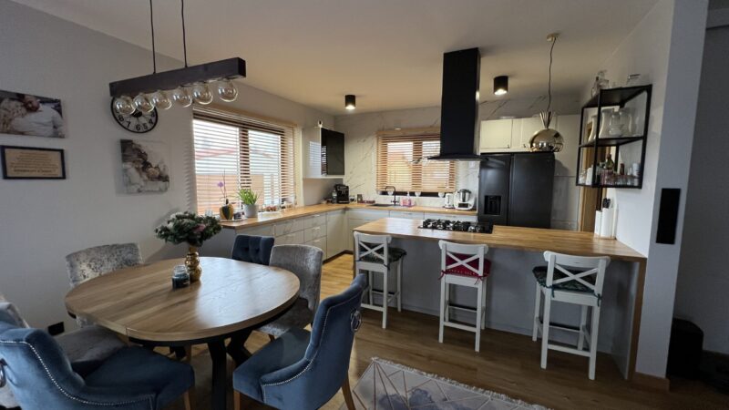 Dom został wykończony w wysokim standardzie z dbałością o szczegóły.
