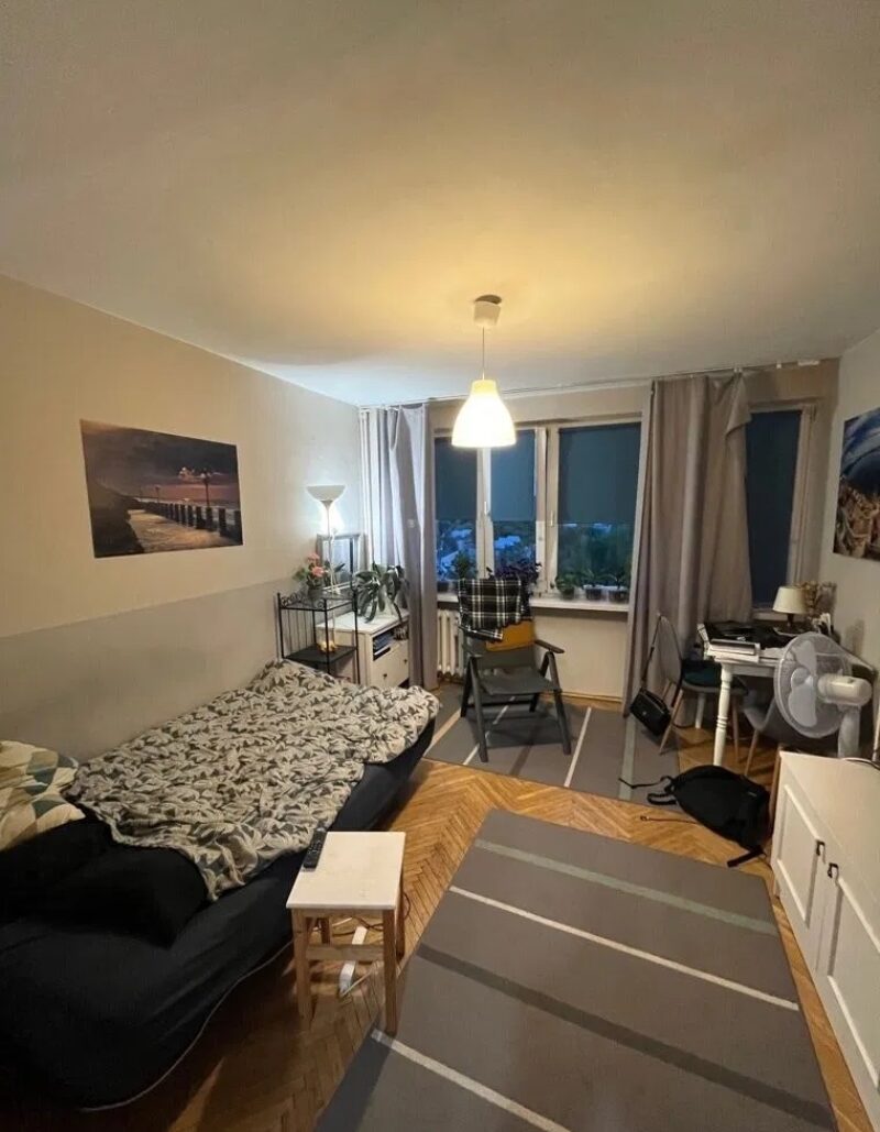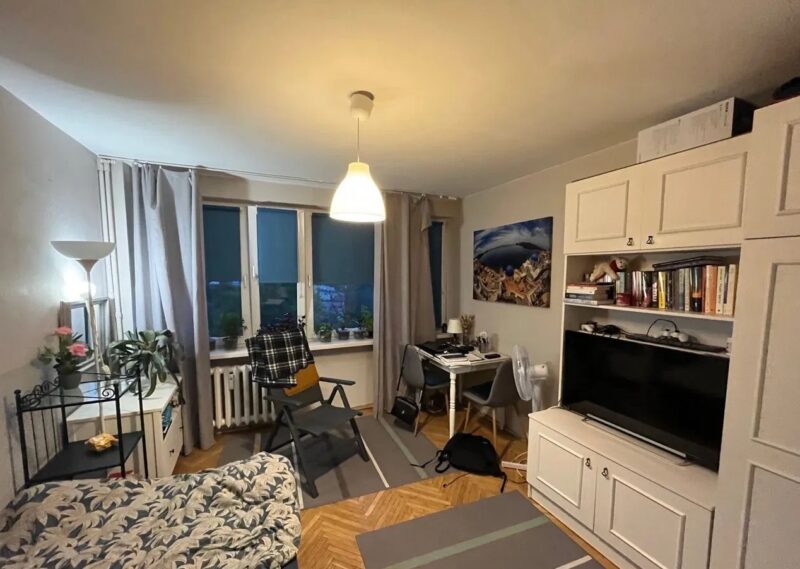 Do sprzedania kawalerka położona w świetnej lokalizacji na dziewiątym piętrze z pięknym widokiem na zieleń.